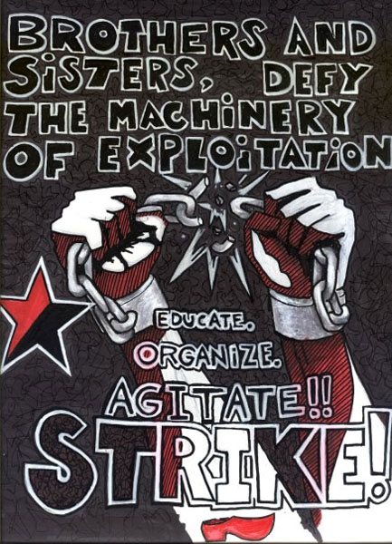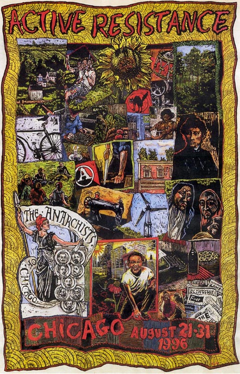 Plakate (und einige Aufklebermotive) anarchistischer Gruppen und aus der anarcho-syndikalistischern Gewerkschaftsbewegung.