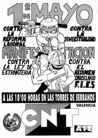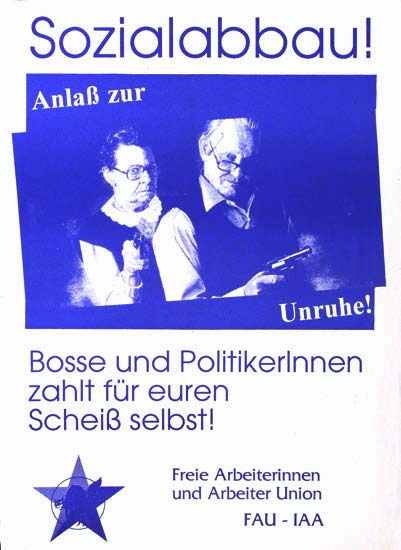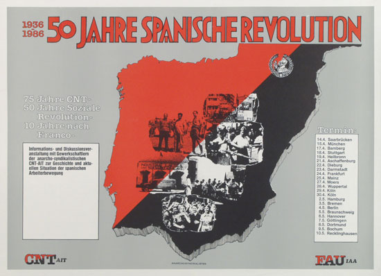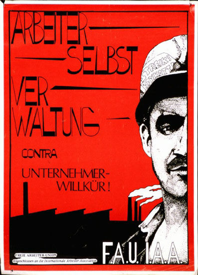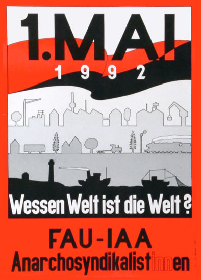 Plakate (und einige Aufklebermotive) anarchistischer Gruppen und aus der anarcho-syndikalistischern Gewerkschaftsbewegung.