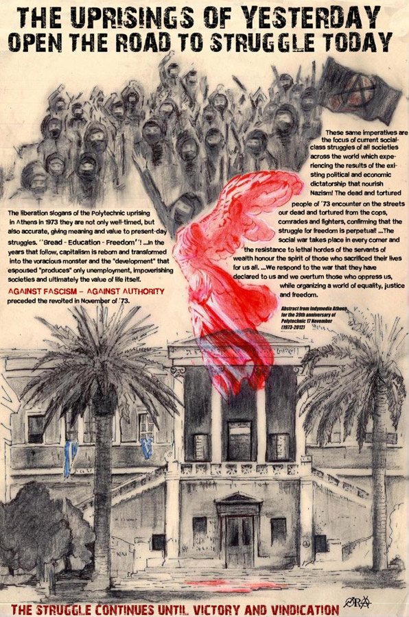 Plakate (und einige Aufklebermotive) anarchistischer Gruppen und aus der anarcho-syndikalistischern Gewerkschaftsbewegung.