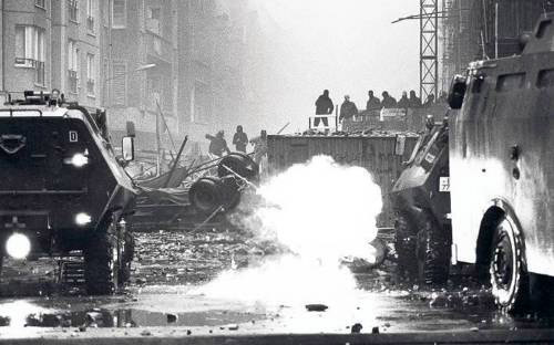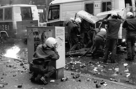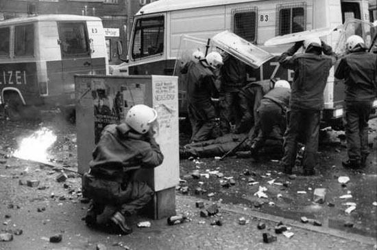 Besetzte Häuser Mainzer Straße - Straßenschlacht 1