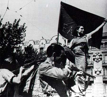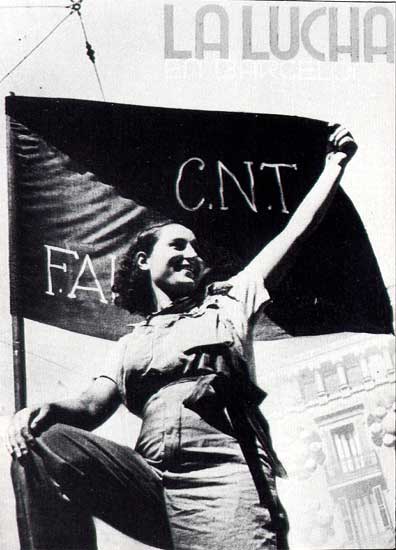 Spanischer Bürgerkrieg und anarchistische Revolution 1936-39 - Bild Milizionärin Fahne 2