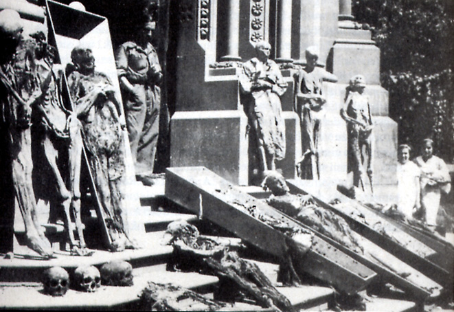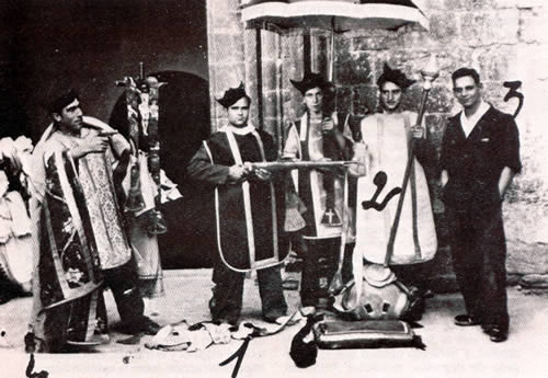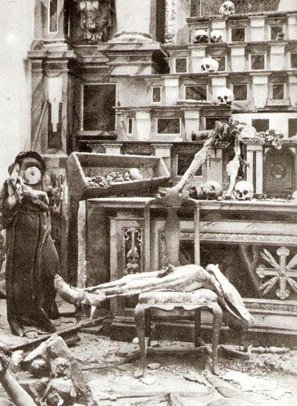 Bilder aus dem spanischen Bürgerkrieg. Die Bilder verwüsteter Kirchen sind vor dem Hintergrund der Herrschaftsrolle der spanischen Kirche zu sehen, die sich auf die Seite der herrschenden Klasse gestellt hatte. Während der Sozialen Revolution entlud sich die jahrzehntelang aufgestaute Wut in verschiedenen Regionen in der Zerstörung von katholischen Kirchen und Klöstern und in Gewalt und Morden gegen katholische KirchenvertreterInnen. Tausende von ihnen wurden in der "republikanischen Zone" ermordet, ebenso FaschistInnen (oder wer dafür gehalten wurde) und andere politische GegnerInnen - ein wenig rühmliches Kapitel des Spanischen Bürgerkriegs. Etwa 50.000 Menschen verloren so nach Paul Preston in den ersten Monaten ihr Leben in den republikanischen Gebieten. Dem standen auf der anderen Seite gezielte Massaker und als Kriegsstrategie eingesetzte Massenvergewaltigungen der Nationalisten gegenüber: alleine beim Massaker von Malaga starben bis zu 10.000 Menschen. Die Zahl der bei Massenerschießungen getöten RepublikanerInnen nach Ende des Bürgerkriegs wird auf Zehntausende geschätzt. Auch AnarchistInnen und anarchistische Milizen waren für Morde verantwortlich, einige kritische Texte dazu wurden in den letzten Jahren in der "Graswurzelrevolution" veröffentlicht. Eine weitere Bildergalerie findet sich bei Libcom.