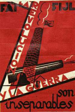 Plakate der anarchistischen Bewegung, der marxistischen POUM (am Ende der Galerie) sowie gemeinsame Plakate von CNT und UGT (sozialistische Gewerkschaft). Plakate waren ein wesentlicher Teil der Propaganda aller politischer Bewegungen, konnten doch durch die Bilder die Inhalte transportiert und auch AnalphabetInnen erreicht werden (Spanien hatte zu Beginn der 30er-Jahre durch ein ausgeprägtes Klassenbildungssystem eine AnalphabetInnenrate von rund 30%). Eine weitere umfangreiche Galerie findet sich bei Libcom.