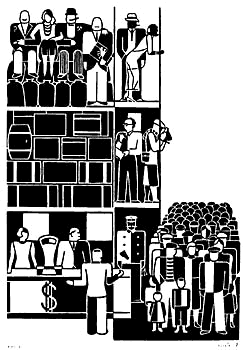 Obwohl als Sohn eines Eisenfabrikanten in Remscheid geboren, interessierte sich Arntz nicht für die Übernahme des Unternehmens seines Vaters. Für kurze Zeit arbeitete er in dessen Fabrik, bevor er sich 1919 für eine Ausbildung zum Zeichenlehrer an der Düsseldorfer Kunstschule entschied. Die Erfahrungen des Arbeiteralltags, der Streiks im Betrieb des Vaters und der Klassenunterschiede zwischen Unternehmer und den ArbeiterInnen überzeugten Arntz für die Sache der ProletInnen. Ein weiterer Beweggrund für seine gesellschaftskritischen Grafiken war seine Kriegsgegnerschaft. Ziel seines künstlerischen Schaffens war die von Grund auf neu zu errichtende klassenlose Gesellschaft. Die Kunst sollte dazu dienen, gesellschaftliche Zusammenhänge aufzuzeigen. Mit Hilfe des figurativen Konstruktivismus als Stil sollte sie direkt in die Gesellschaft hineinwirken. Gerd Arntz verstarb 1988.