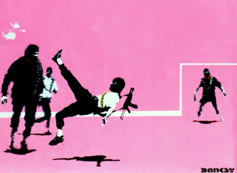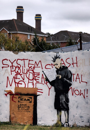 Banksy gehört wohl zu den bekanntesten zeitgenössischen Streetart-KünstlerInnen. In seinen Arbeiten bedient er sich Mitteln der Kommunikationsguerilla um alternative Sichtweisen auf politische Themen zu verbreiten.