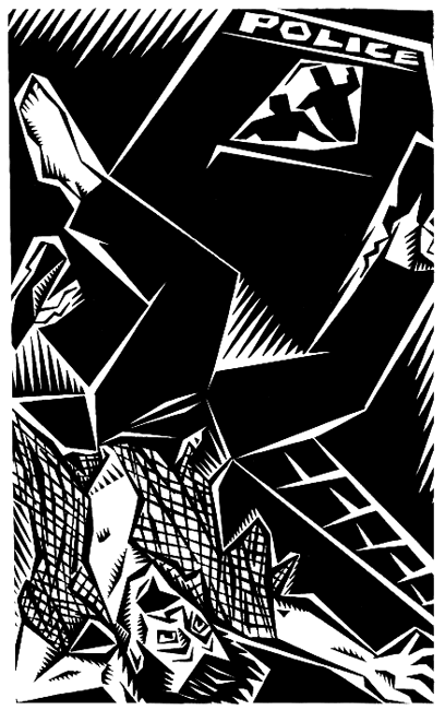 Grafiken des anarchistischen Künstlers Clifford Harper - Ermordung des Anarchisten Pinelli