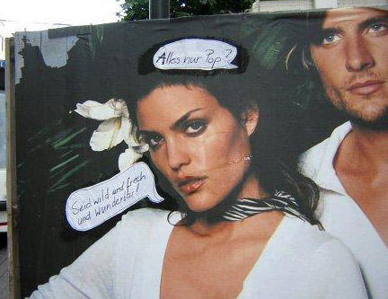 Schablonensprühereien, Graffities, Wandmalereien, Plakate, Aufkleber oder Adbusting - es gibt viele Möglichkeiten, sich im öffentlichen Raum auszudrücken. Eine Sammlung wunderbarer Streetart gibt es unter Streetart Utopia - z.B. ein best of 2011.