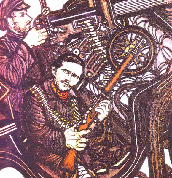 Flavio Costantini wurde 1926 in Rom geboren und verstarb im Mai 2013. Bekannt wurde er duch seine Illustrierungen zahlreicher Bücher - an dieser Stelle sind einige seiner Arbeiten zum Anarchismus angeführt. Weitere Arbeiten des Künstlers finden sich u.a. hier.