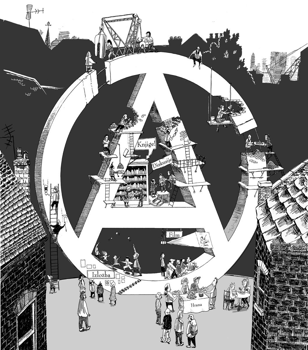 Grafiken vom berühmten "A im Kreis" hin zu anderen Anarch@-Symbolen, Logos und Bilder.