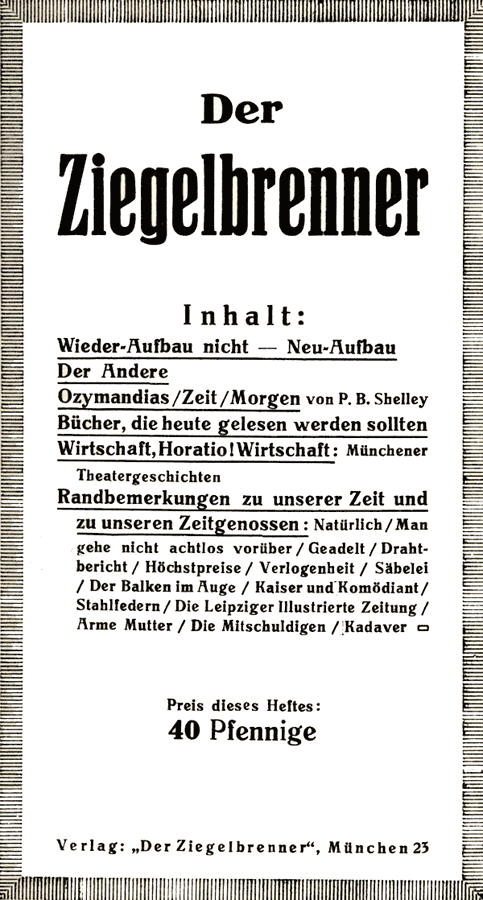 Der Ziegelbrenner - Ret Marut / B. Traven