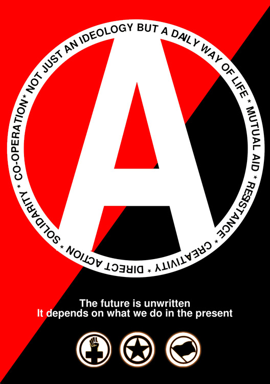 Plakate (und einige Aufklebermotive) anarchistischer Gruppen und aus der anarcho-syndikalistischern Gewerkschaftsbewegung.