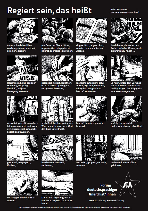 Plakate (und einige Aufklebermotive) anarchistischer Gruppen und aus der anarcho-syndikalistischern Gewerkschaftsbewegung.