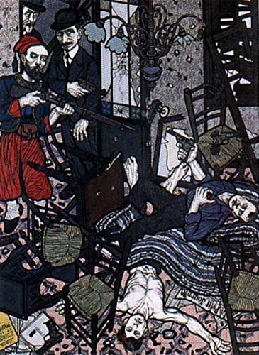 Flavio Costantini wurde 1926 in Rom geboren und verstarb im Mai 2013. Bekannt wurde er duch seine Illustrierungen zahlreicher Bücher - an dieser Stelle sind einige seiner Arbeiten zum Anarchismus angeführt. Weitere Arbeiten des Künstlers finden sich u.a. hier.