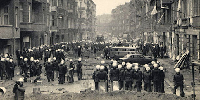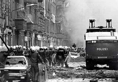 Besetzte Häuser Mainzer Straße - Straßenschlacht 1
