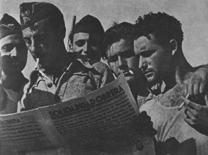 Milizionäre lesen Solidaridad Obrera (CNT)