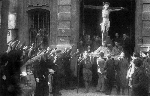 FaschistInnen feiern Sieg mit Jesusstatue 1939