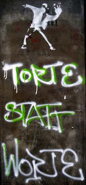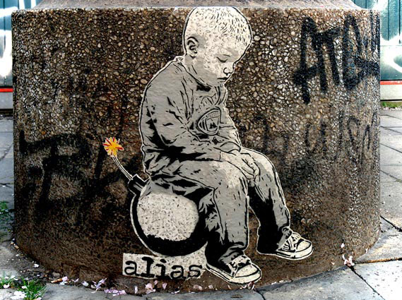 Schablonensprühereien, Graffities, Wandmalereien, Plakate, Aufkleber oder Adbusting - es gibt viele Möglichkeiten, sich im öffentlichen Raum auszudrücken. Eine Sammlung wunderbarer Streetart gibt es unter Streetart Utopia - z.B. ein best of 2011.