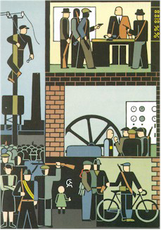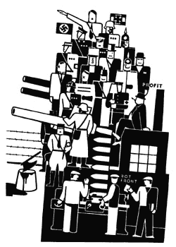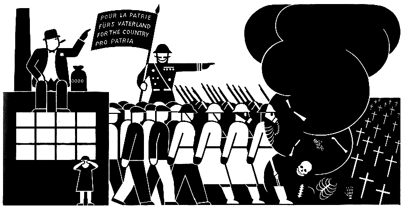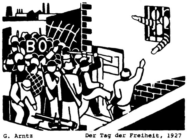 Obwohl als Sohn eines Eisenfabrikanten in Remscheid geboren, interessierte sich Arntz nicht für die Übernahme des Unternehmens seines Vaters. Für kurze Zeit arbeitete er in dessen Fabrik, bevor er sich 1919 für eine Ausbildung zum Zeichenlehrer an der Düsseldorfer Kunstschule entschied. Die Erfahrungen des Arbeiteralltags, der Streiks im Betrieb des Vaters und der Klassenunterschiede zwischen Unternehmer und den ArbeiterInnen überzeugten Arntz für die Sache der ProletInnen. Ein weiterer Beweggrund für seine gesellschaftskritischen Grafiken war seine Kriegsgegnerschaft. Ziel seines künstlerischen Schaffens war die von Grund auf neu zu errichtende klassenlose Gesellschaft. Die Kunst sollte dazu dienen, gesellschaftliche Zusammenhänge aufzuzeigen. Mit Hilfe des figurativen Konstruktivismus als Stil sollte sie direkt in die Gesellschaft hineinwirken. Gerd Arntz verstarb 1988.