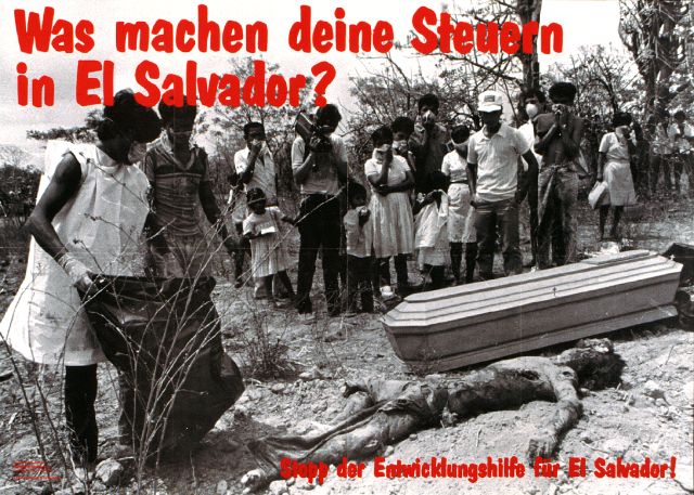 Plakate Sozialer Bewegungen - Was machen deine Steuern in El Salvadore?