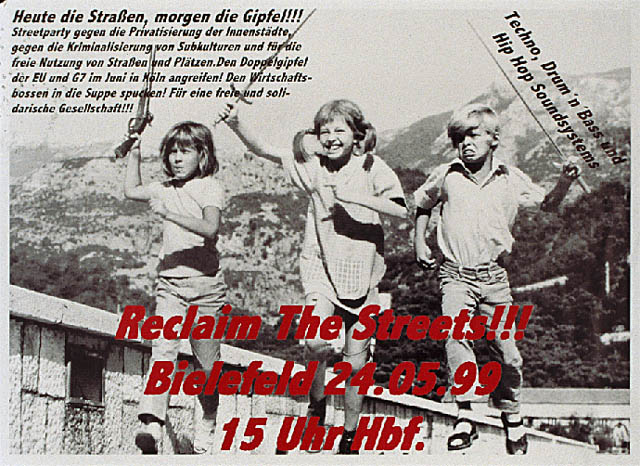 Plakate Sozialer Bewegungen - Reclaim the streets Bielefeld 1999
